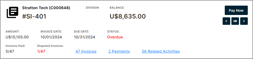 And here's a look at the header of a summary invoice on the Invoice detail page: